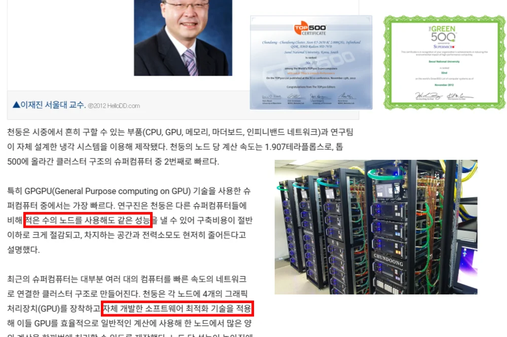 관련 기사 보러가기 → 국산 슈퍼컴 천둥 세계 278위…서울대 이재진 교수팀 개발